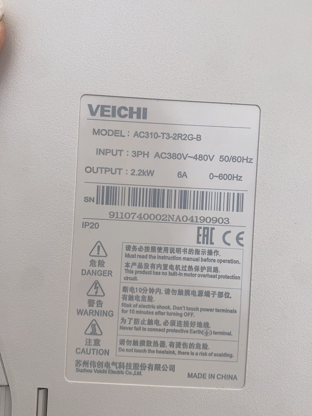 VEICHI伟创变频器,AC310-T/S2-2R2G-B两