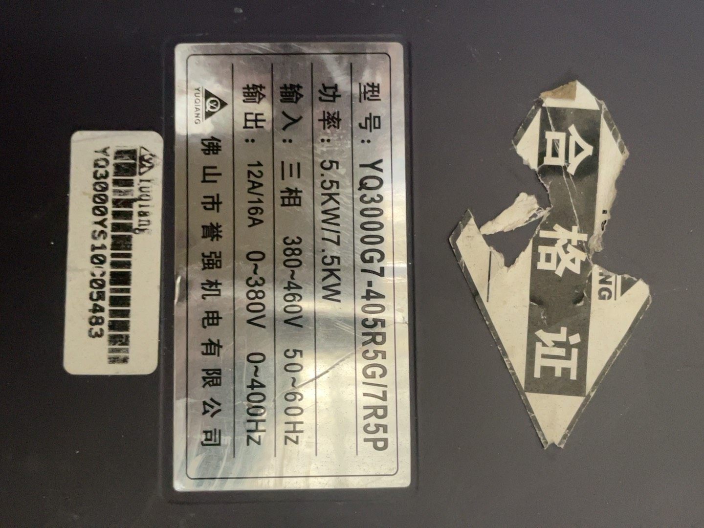 > 誉强YQ3000变频器,型号YQ3000-G7-405R5G