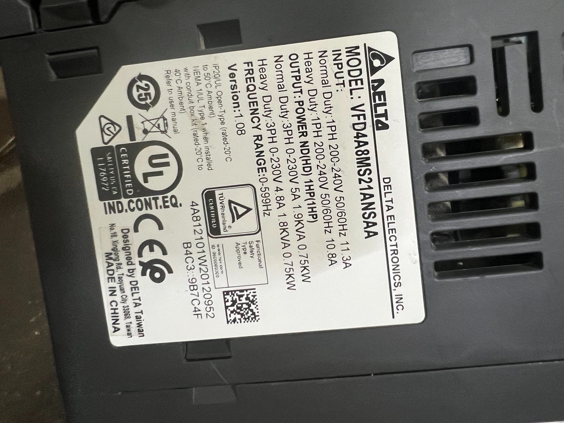 台达MS300变频器0.75KW,1.5KW,220V,实物