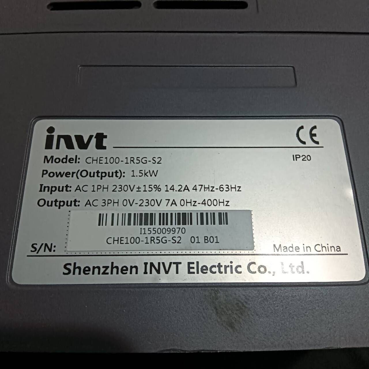 > 英威腾CHE100系列变频器1.5kw 单相220V