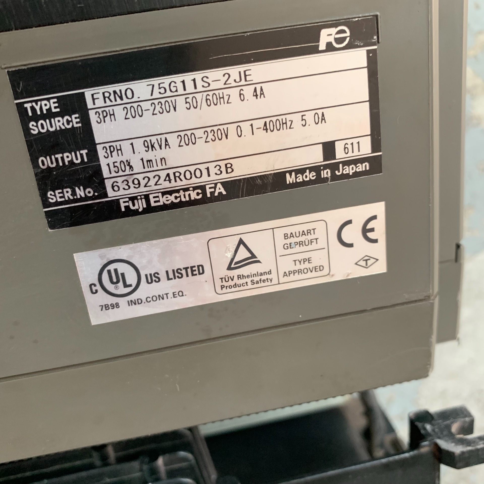 > 富士5000G11系列变频器0.75KW 三相220V