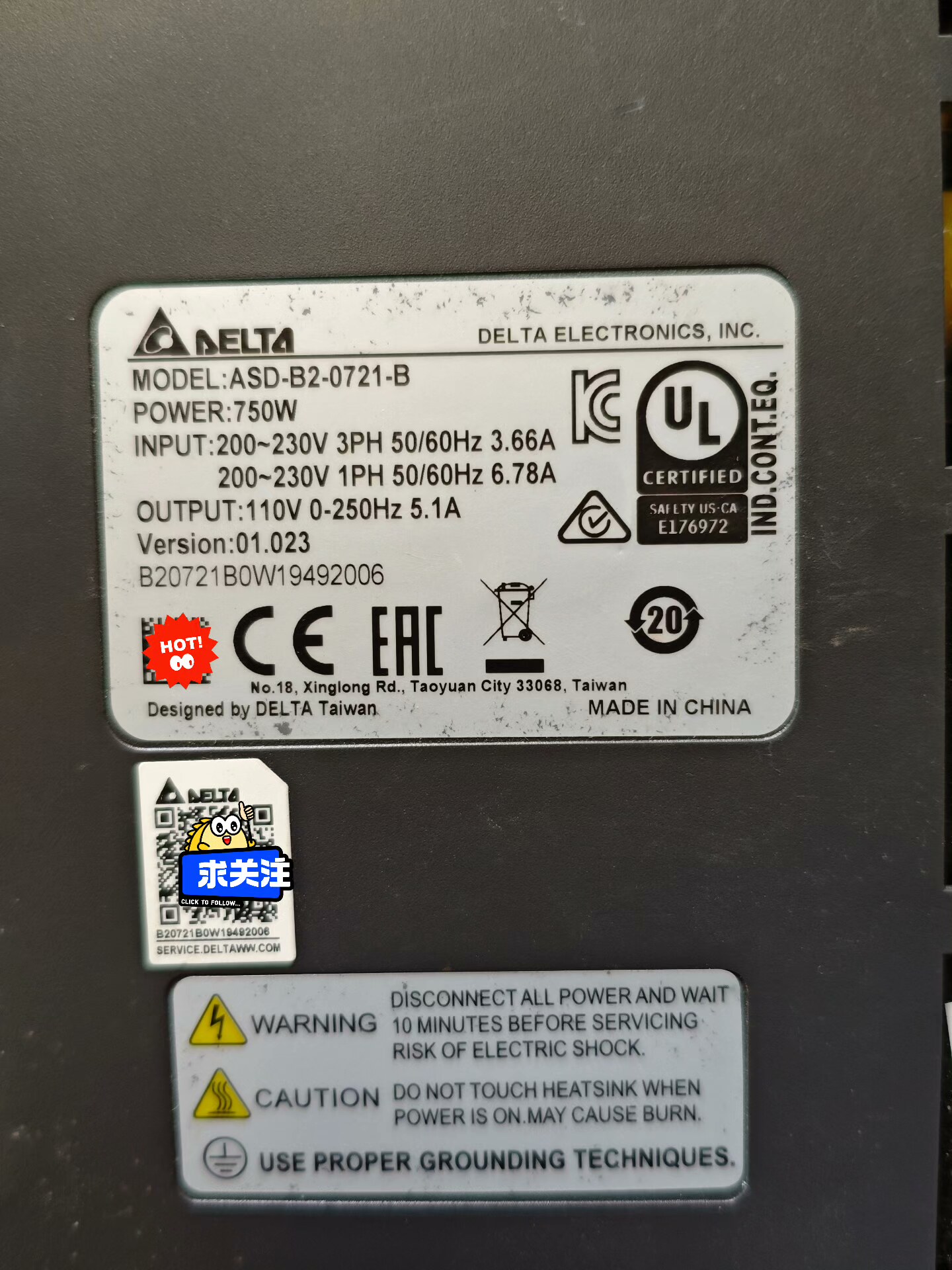 台达伺服驱动器 ASD-B2-0721-B 拆机,实物拍摄,