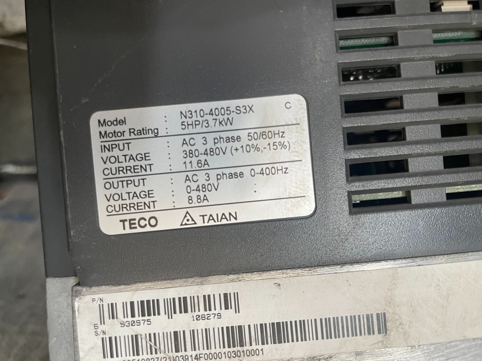 TECO台安变频器N310-4005-S3X,380V,3.