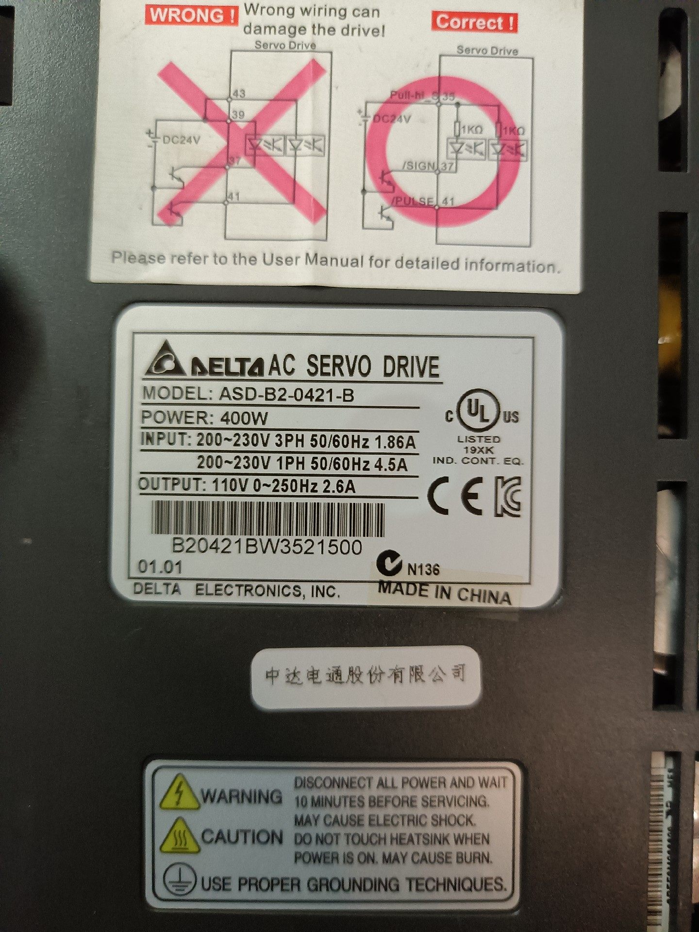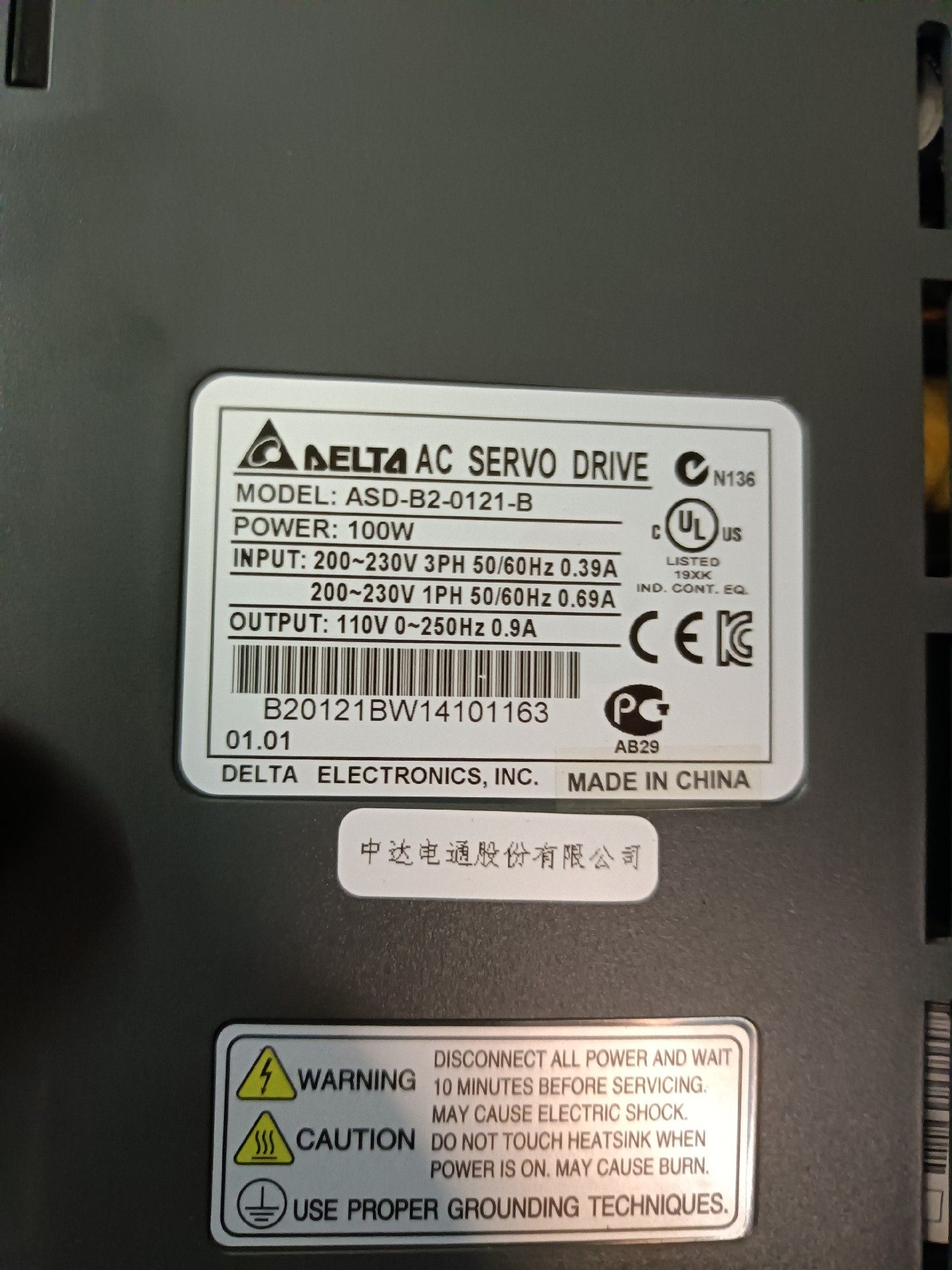 > 台达伺服电机100w型号ECMA-20401ES