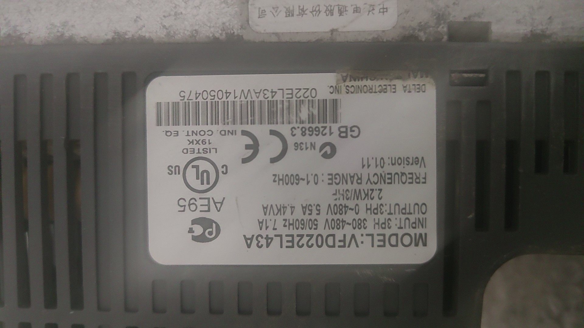 台达变频器VFD022EL43A(2)台