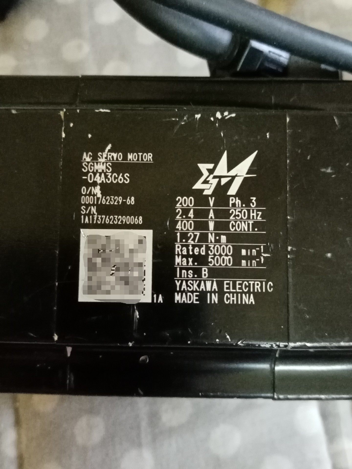 > 拆机原装YASKAWA安川伺服电机SGMMS-04AC6S现