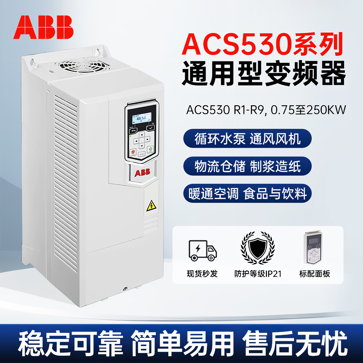 > ABB变频器ACS530系列0.75/1.5/37/45/75//250KW风机水泵全新原装