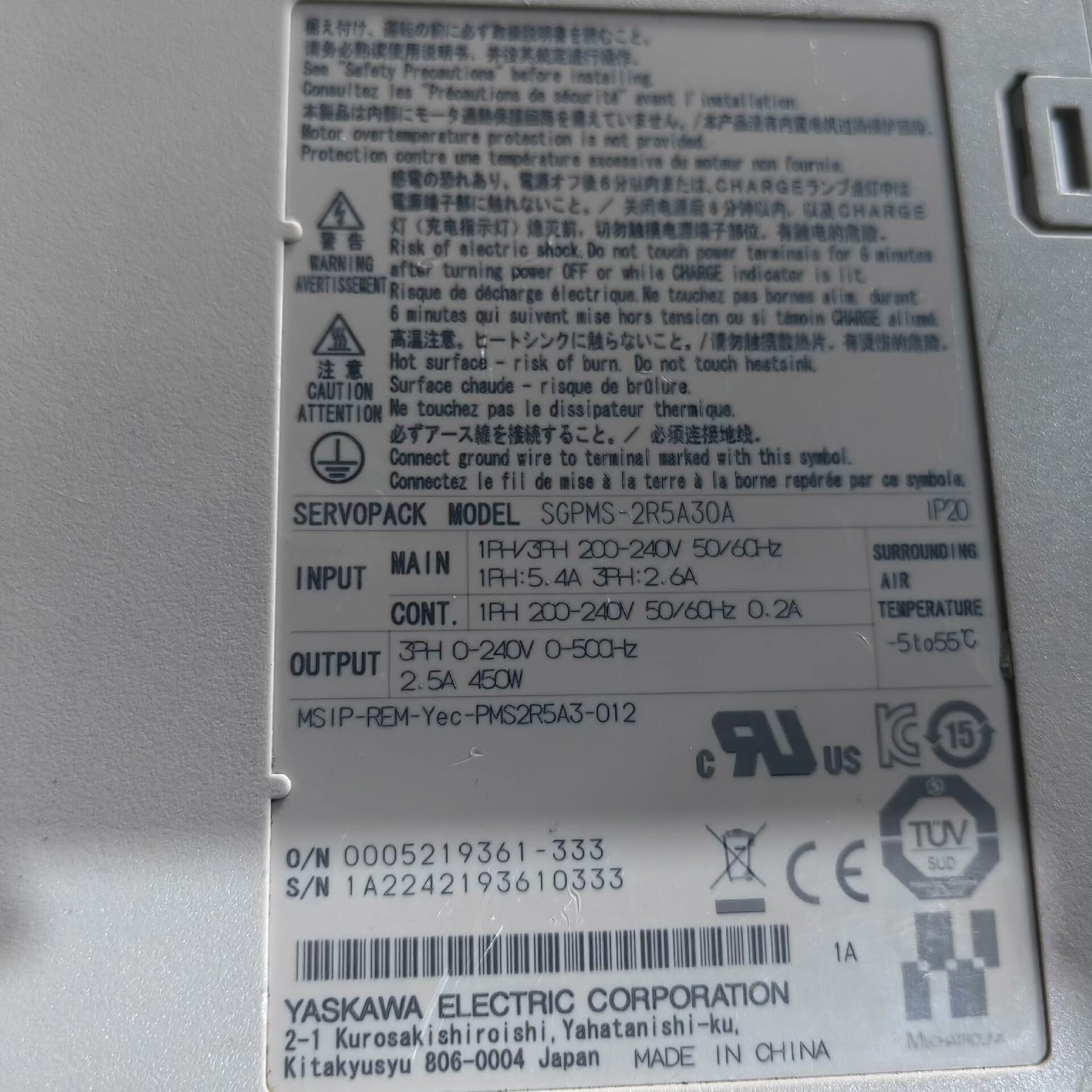 安川伺服驱动器SGPMS-2R5A30A 450W 安川总