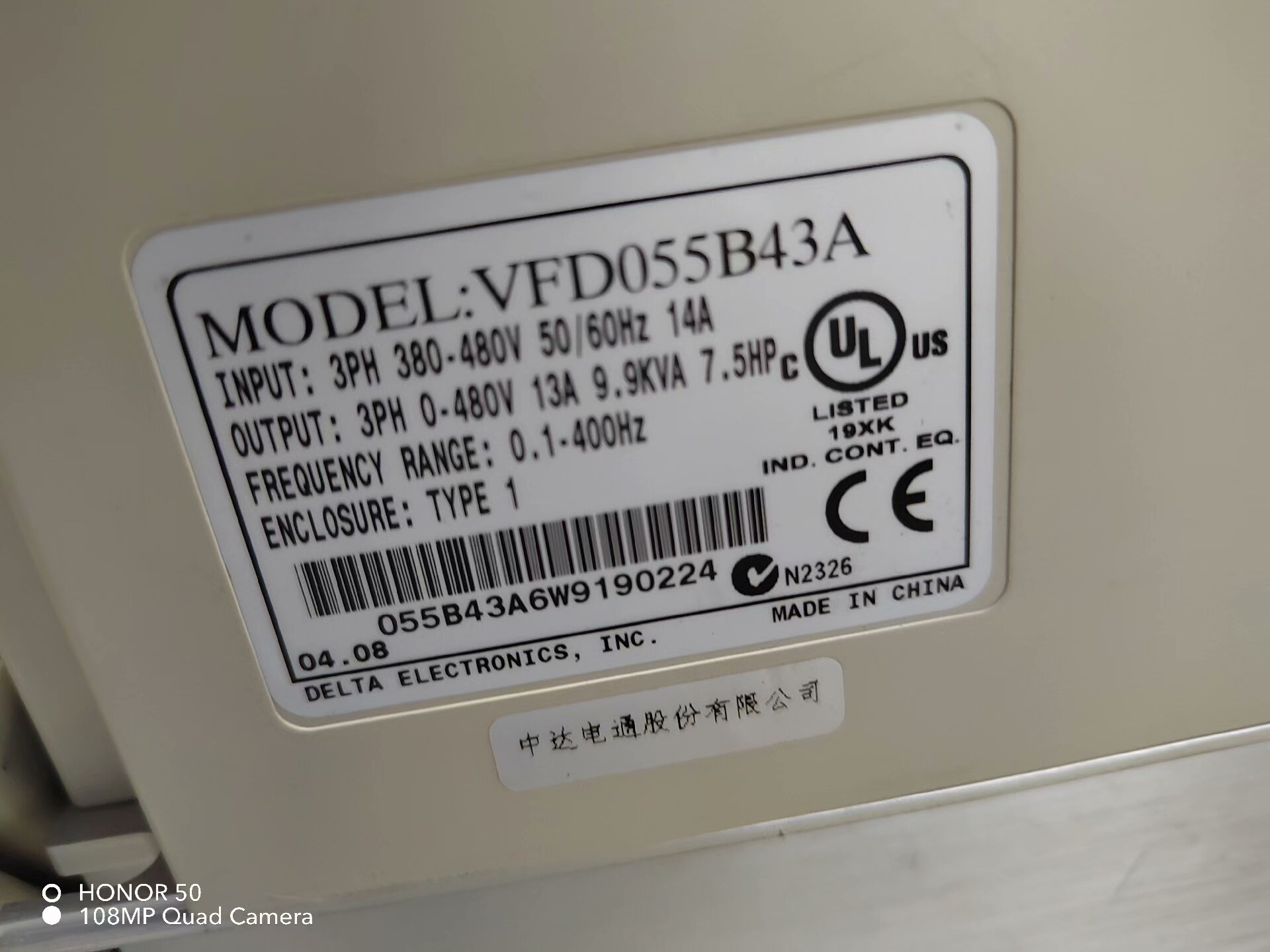 现货台达变频器VFD055CP43B-21 5.5KW 实物