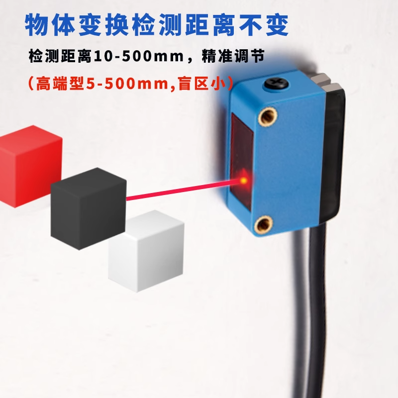 激光漫反射光电开关方形背景抑制感应传感器检测距离不受颜色影响