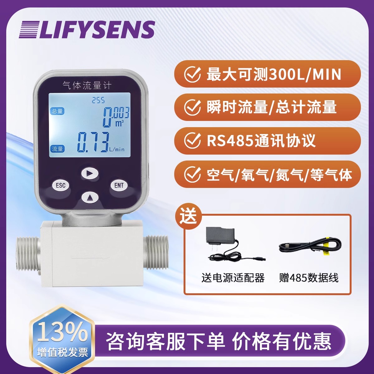 数显高精度热式气体质量流量计压缩空气氮气氧气调节阀MEMS传感器