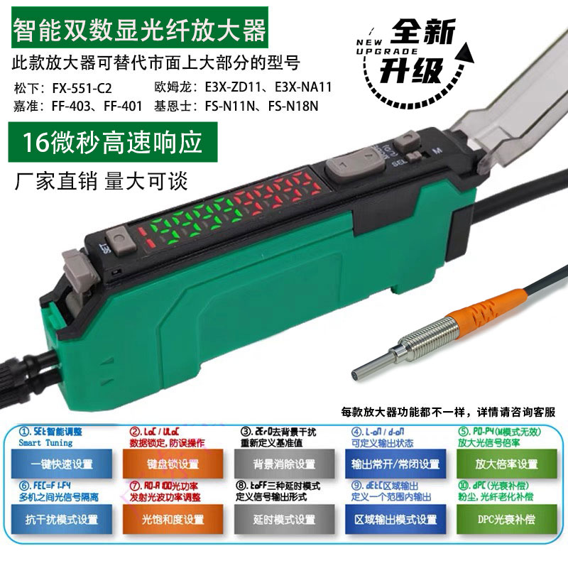 光纤传感器放大器双数显对射漫反射高速25微秒感应光电开关