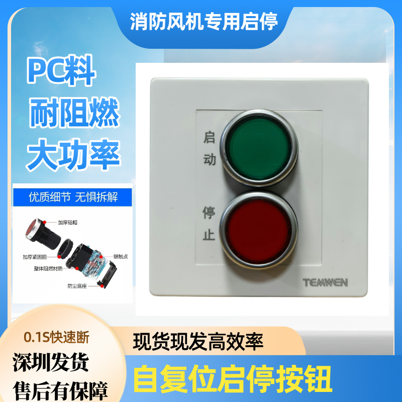 > 风机启停按钮开关控制面板86型自复位启停电机通风设备急停按钮盒