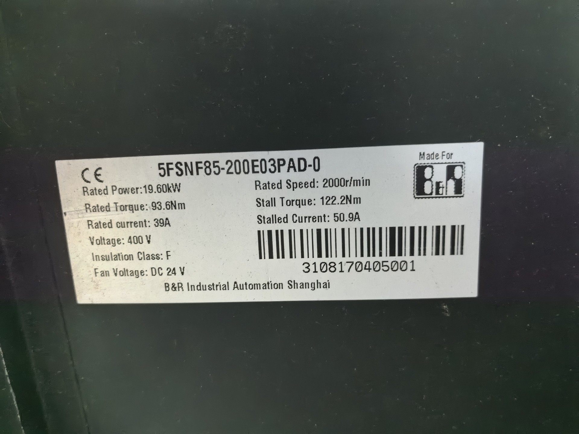 > 贝加莱伺服电机,型号5FSNF85-200E03PAD-0和