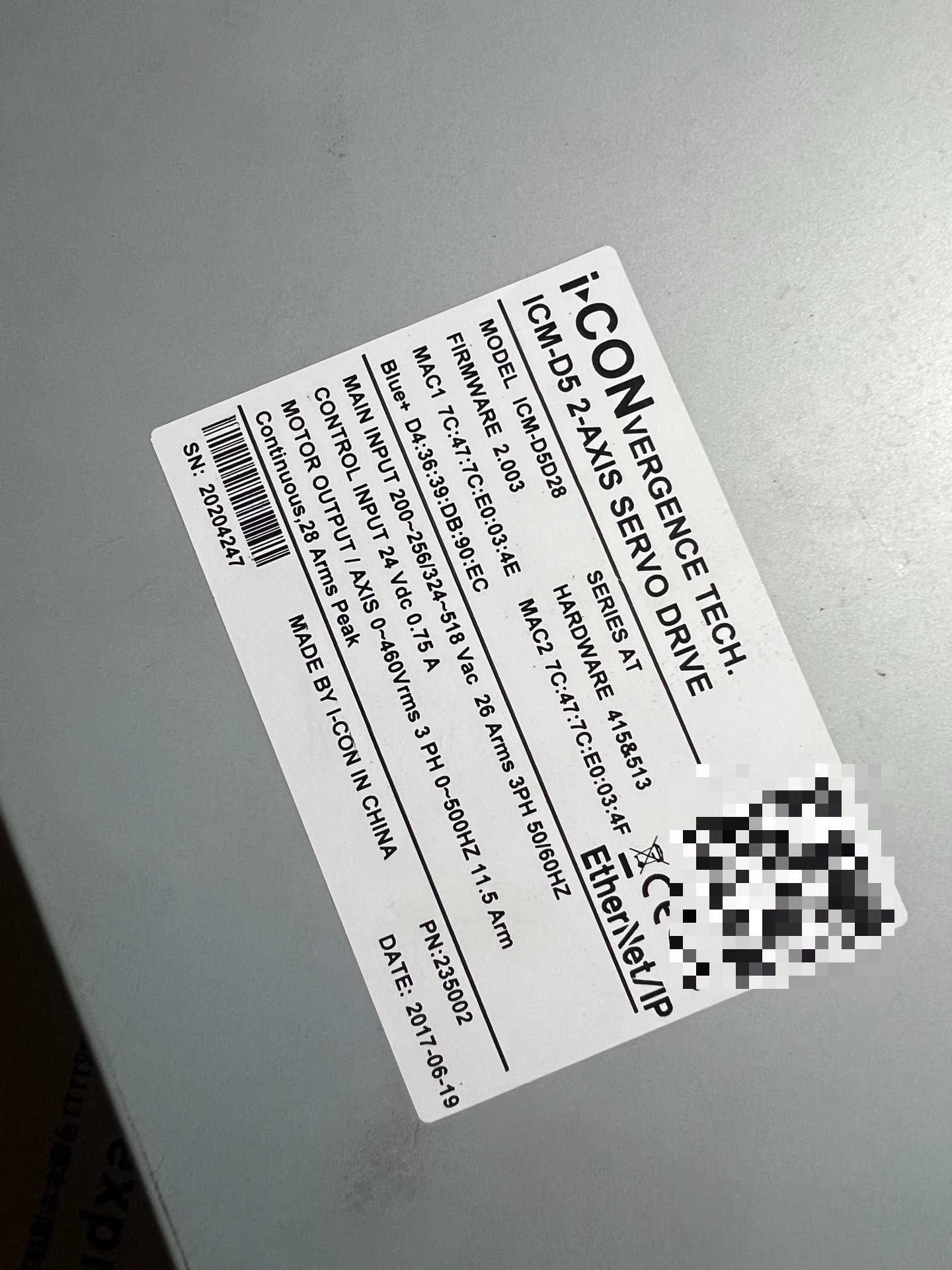 > iCON英孚康伺服驱动器ICM-D5D28,2轴伺服驱动器,