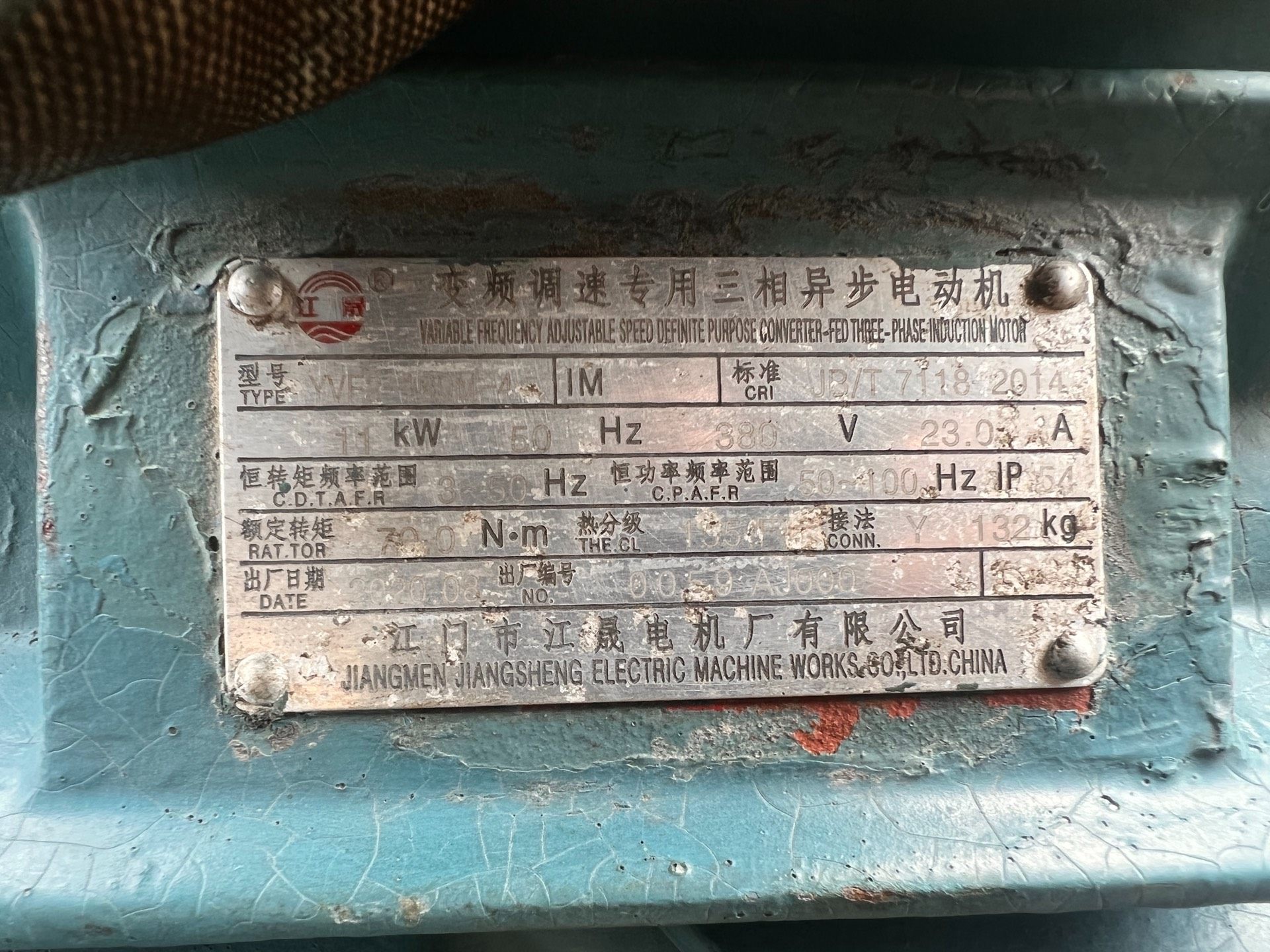 江门江晟电机,变频调速专用三相异步电动机,功率11千瓦,机子