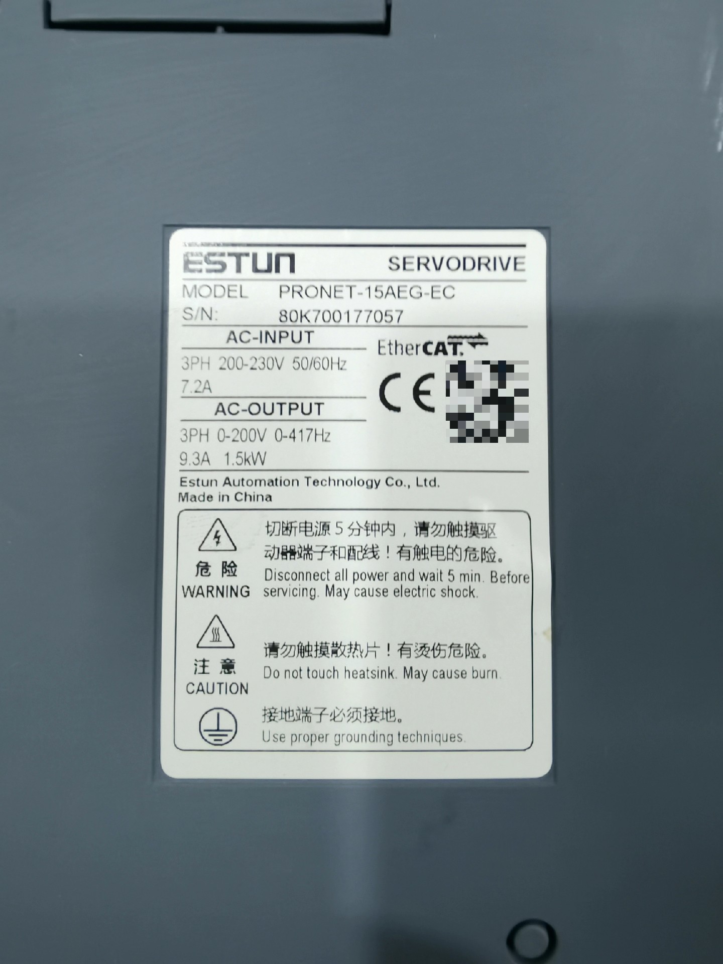 > 埃斯顿伺服1.5KW,型号,电机EMG-15ALB24驱动P