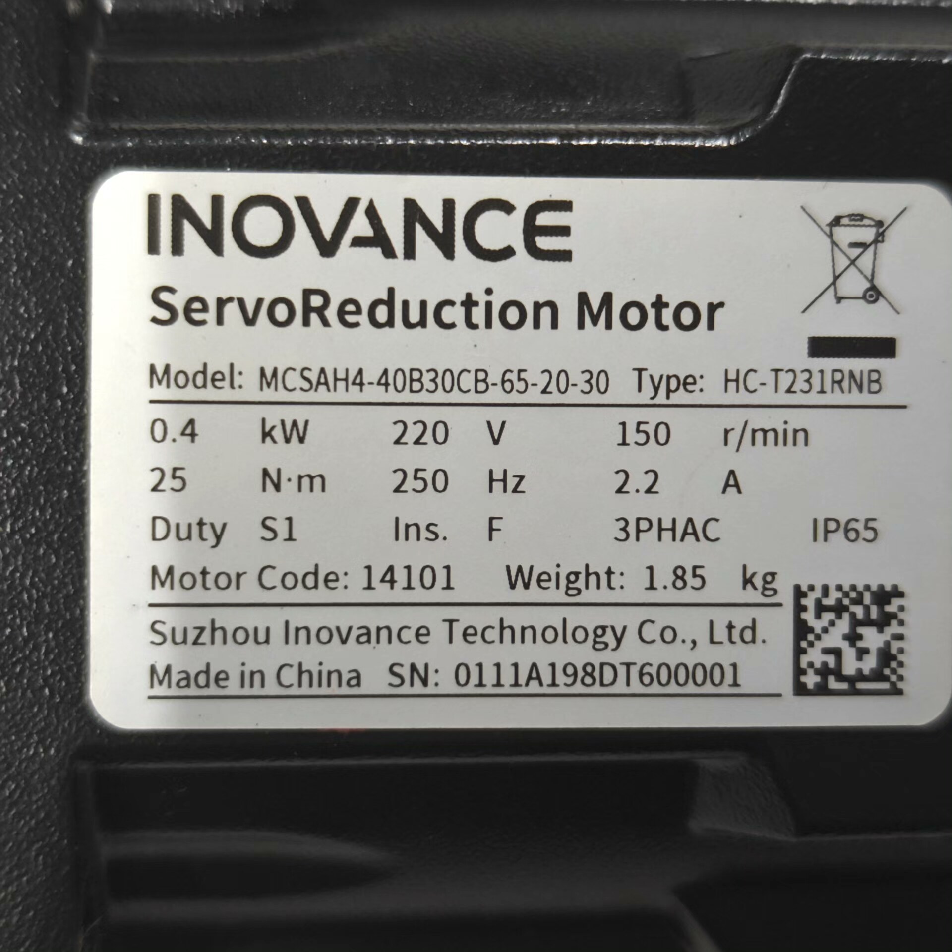 > 汇川伺服电机 MCSAH4-40B30CB-65-20-30