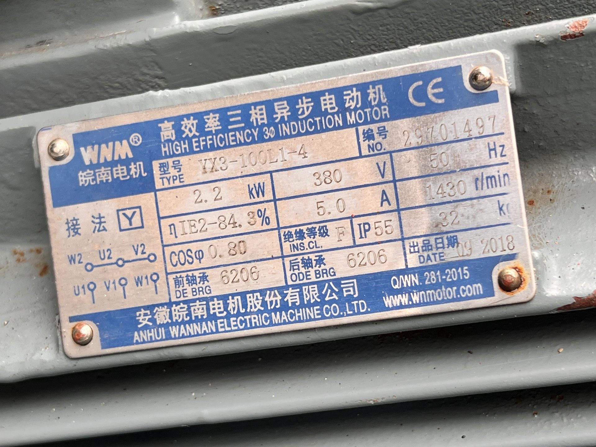 > 皖南电机 YX3-100L1-4 三相异步电动机,2.2KW