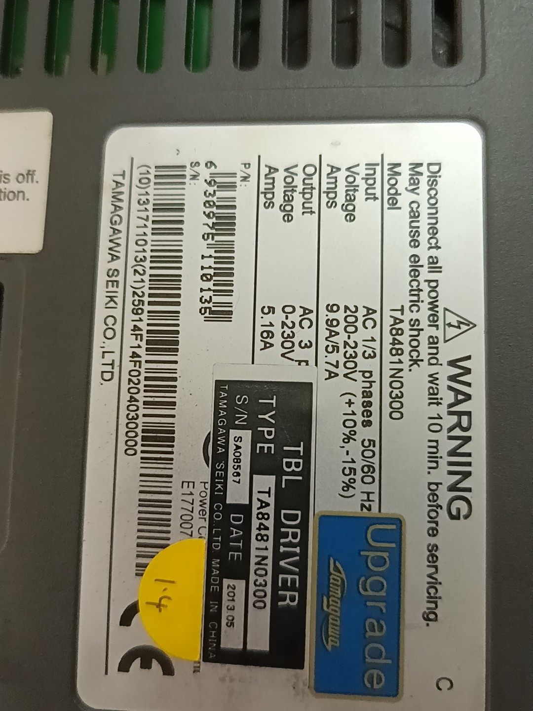 > 多摩川伺服驱动器TA8481N0300,拆机品,外观成色如图