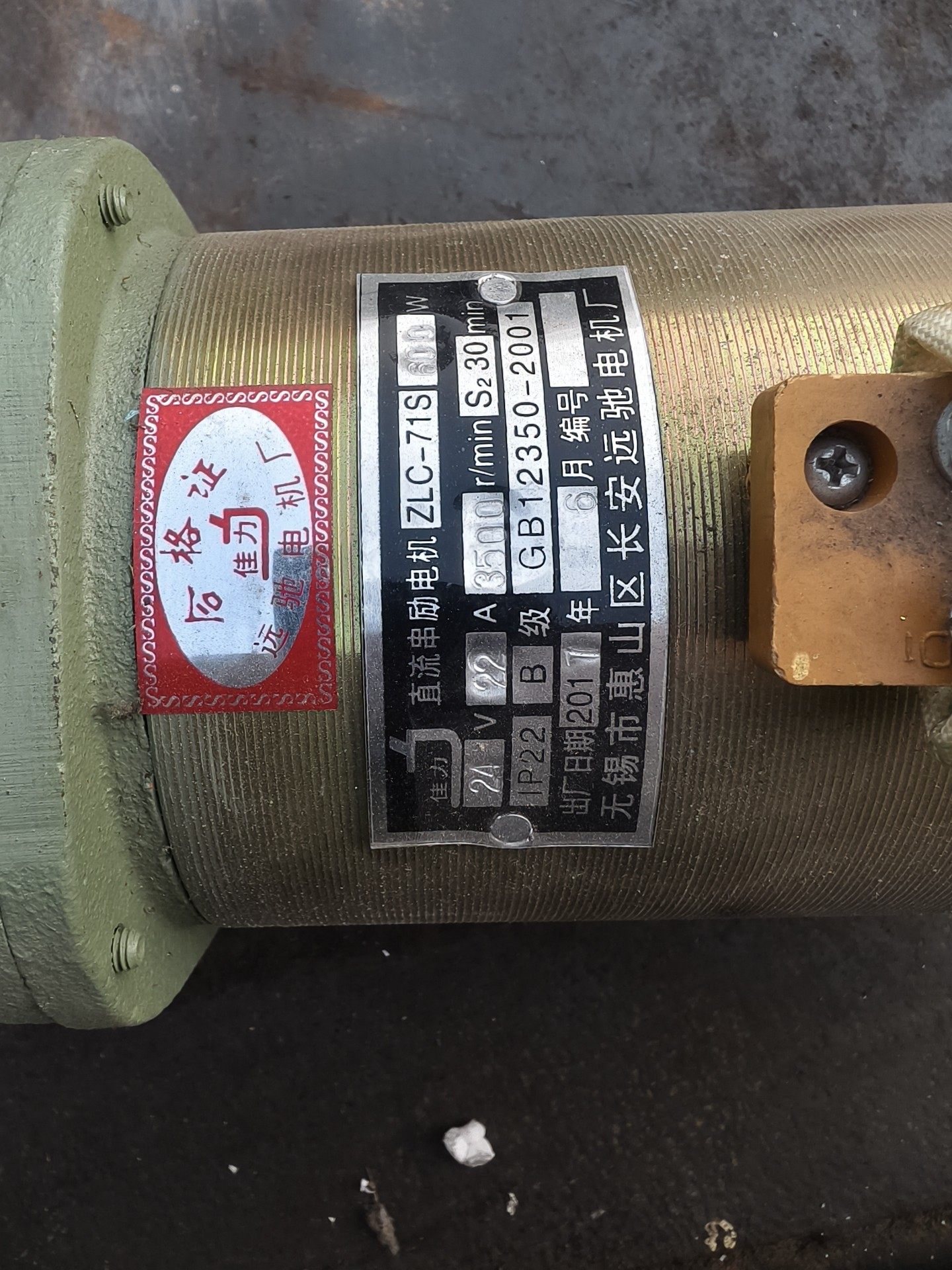 > 远驰电机厂直流串励电机,型号ZLC-71S。24V电压,额定