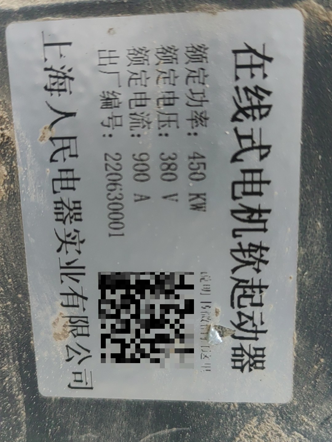 > 上海人民电器在线式电机软起动器,额定功率450kW,额定电压