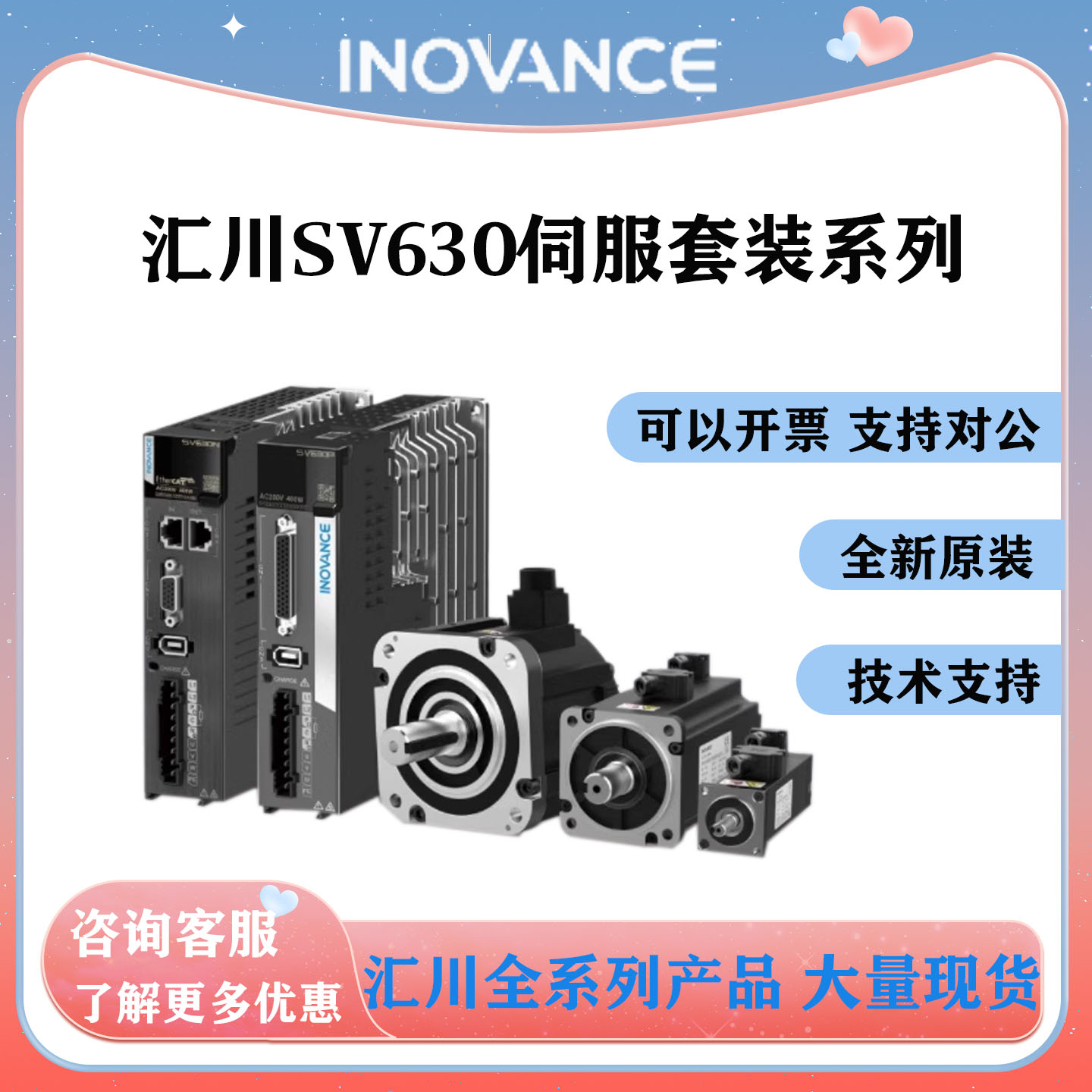 > 汇川伺服电机驱动器套装SV630P/N脉冲总线正品汇川伺服驱动器套装