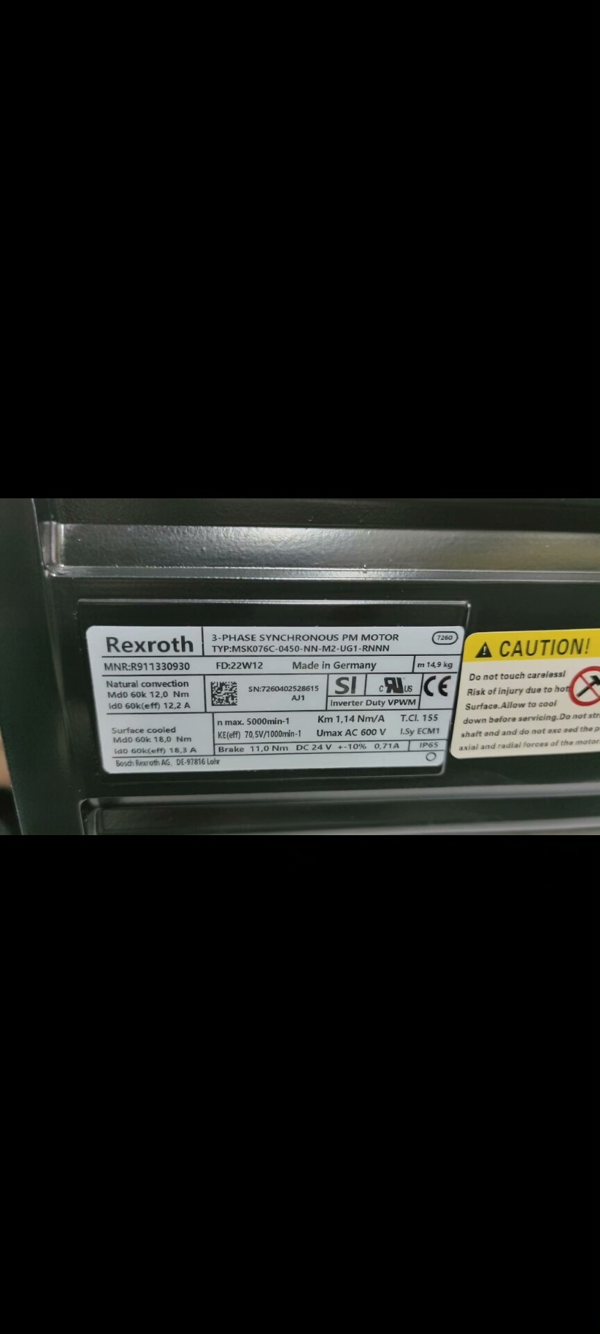 贝加莱伺服电机,型号5FSNF85-200E03PAD-0和
