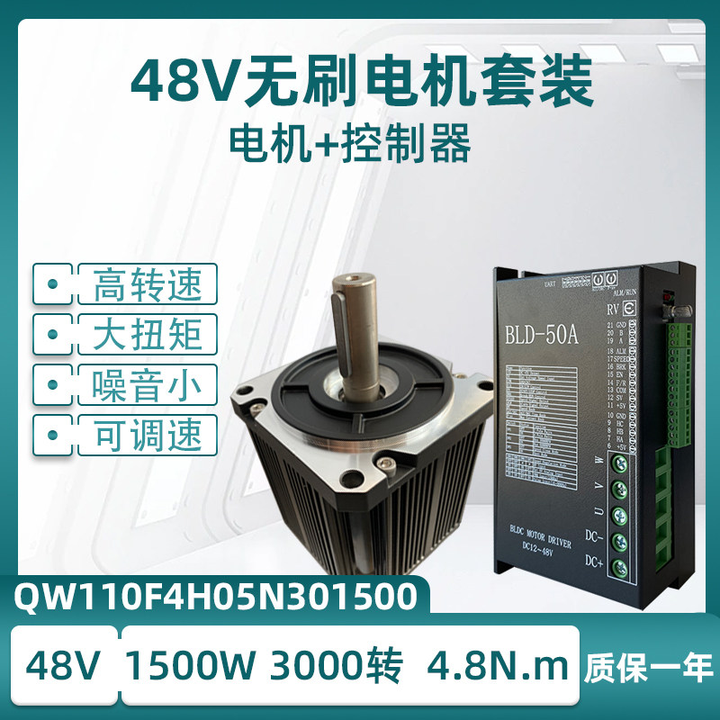 110低压48v直流无刷电机套装QW110F4H05N301500带霍尔大功率1