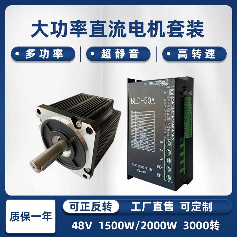 48v直流无刷电机驱动套装大功率高速3000转1.5KW2KW带485通讯