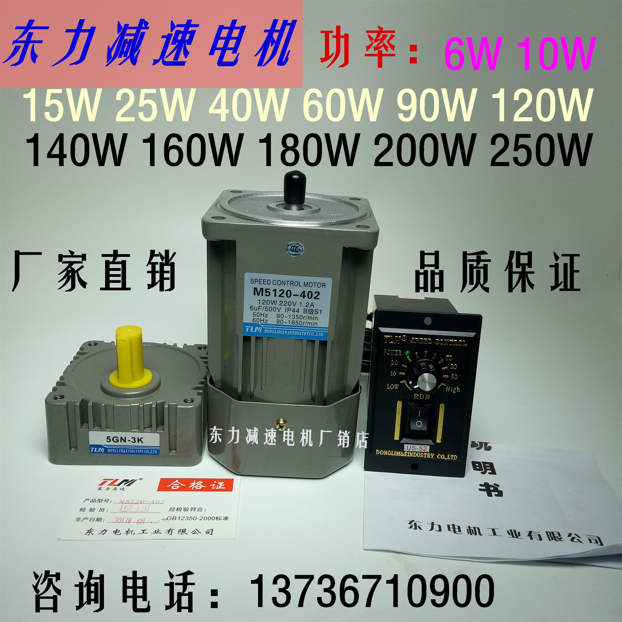 台力减速电机微小型单相220V调速马达60W90W120W400W低慢速正反转