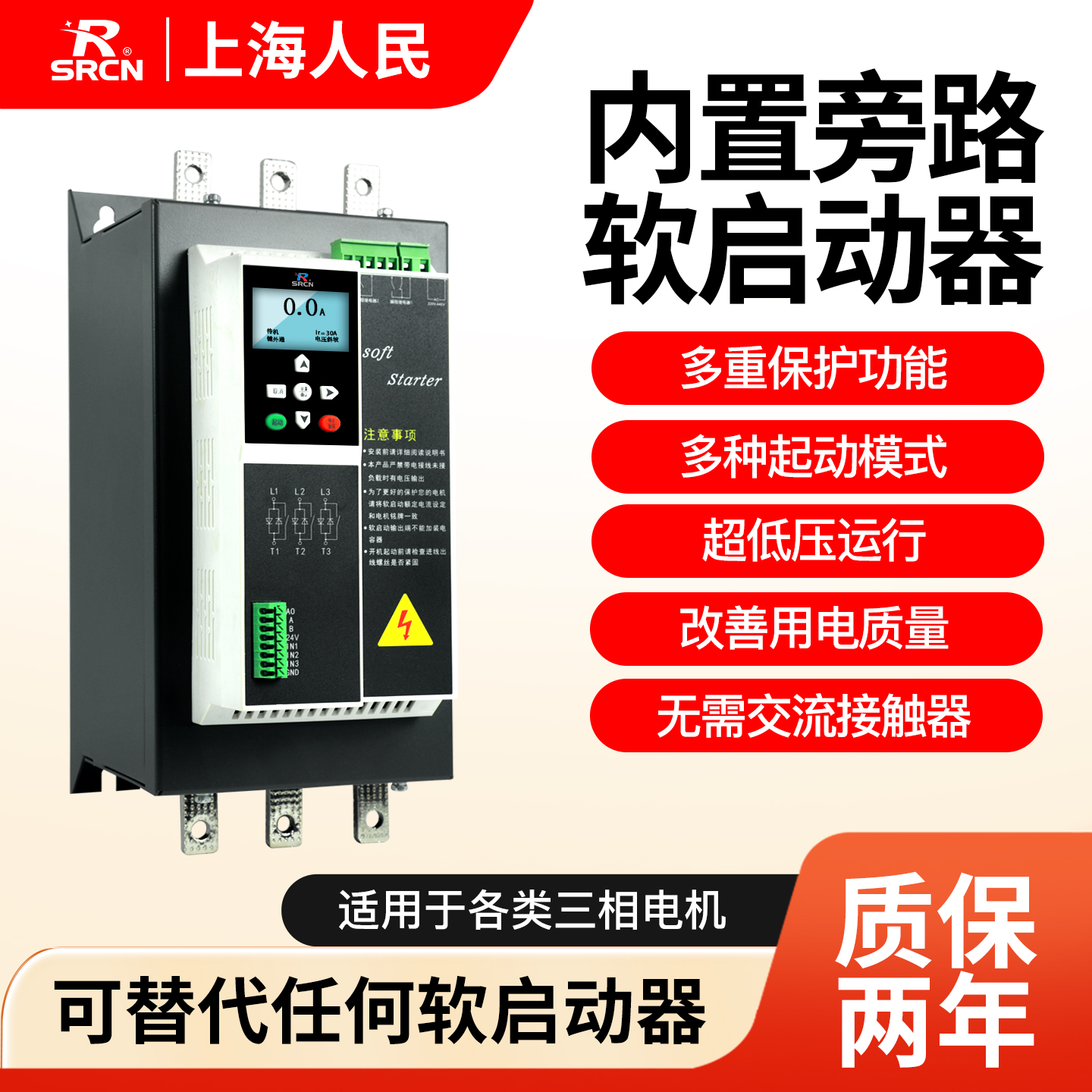 上海人民内置旁路软启动器15/22/37/45/55/200/250KW电机启动