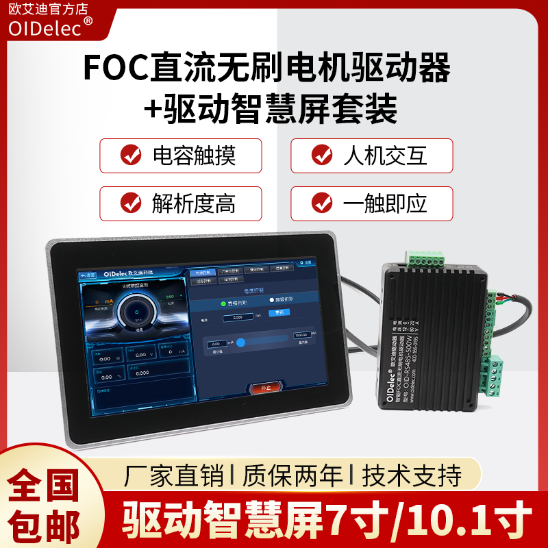FOC直流无刷电机驱动器触摸屏套装驱动智慧屏7寸/10.1寸工业屏
