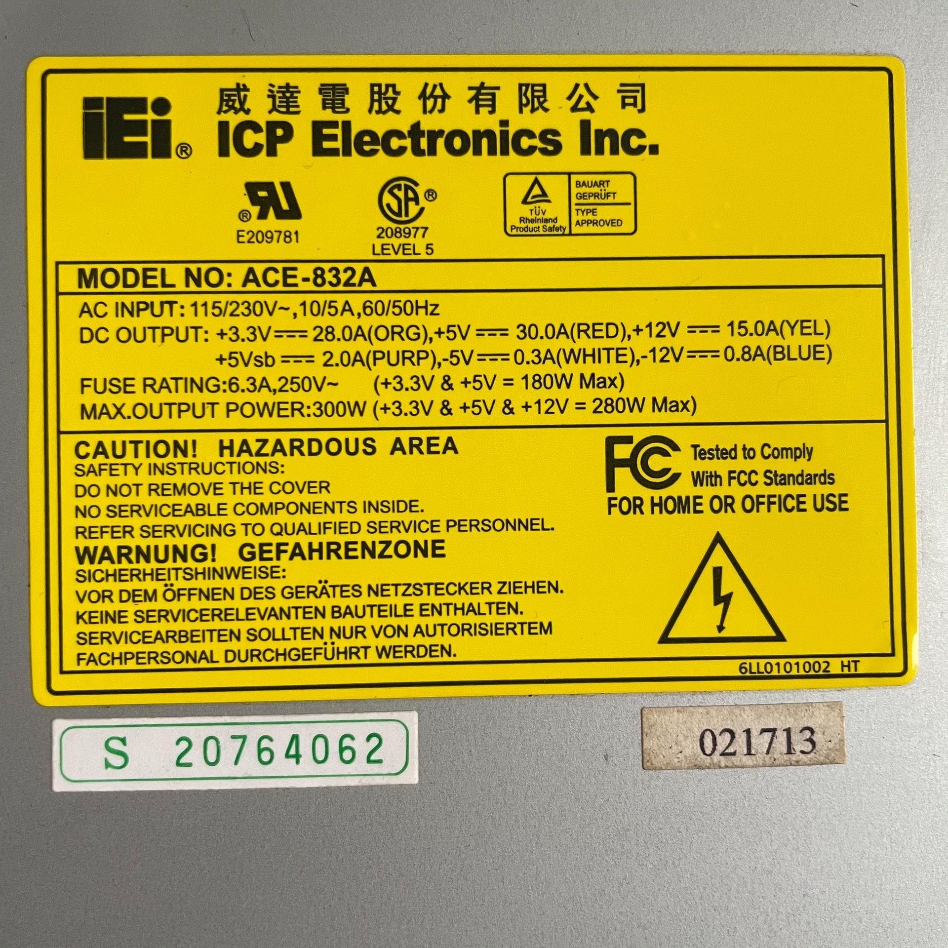 > 原装拆机 IEI威强 ACE-832A 工业电源 工控机电源