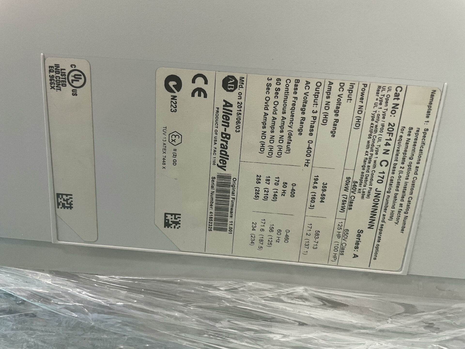 > AB变频器PF753系列20F14NC170JN0NNNNN