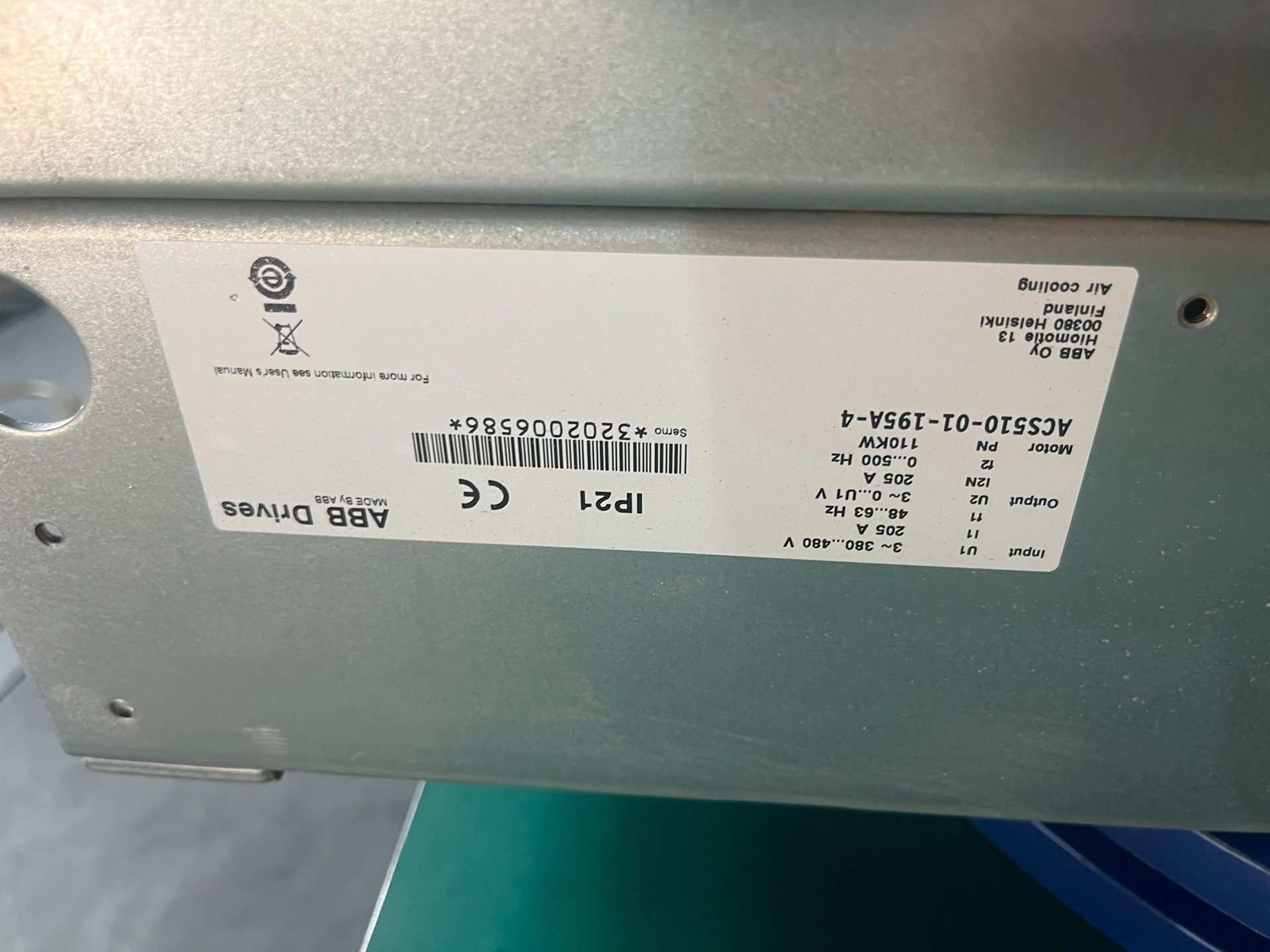 > 装柜未用ABB变频器 ACS510 110KW