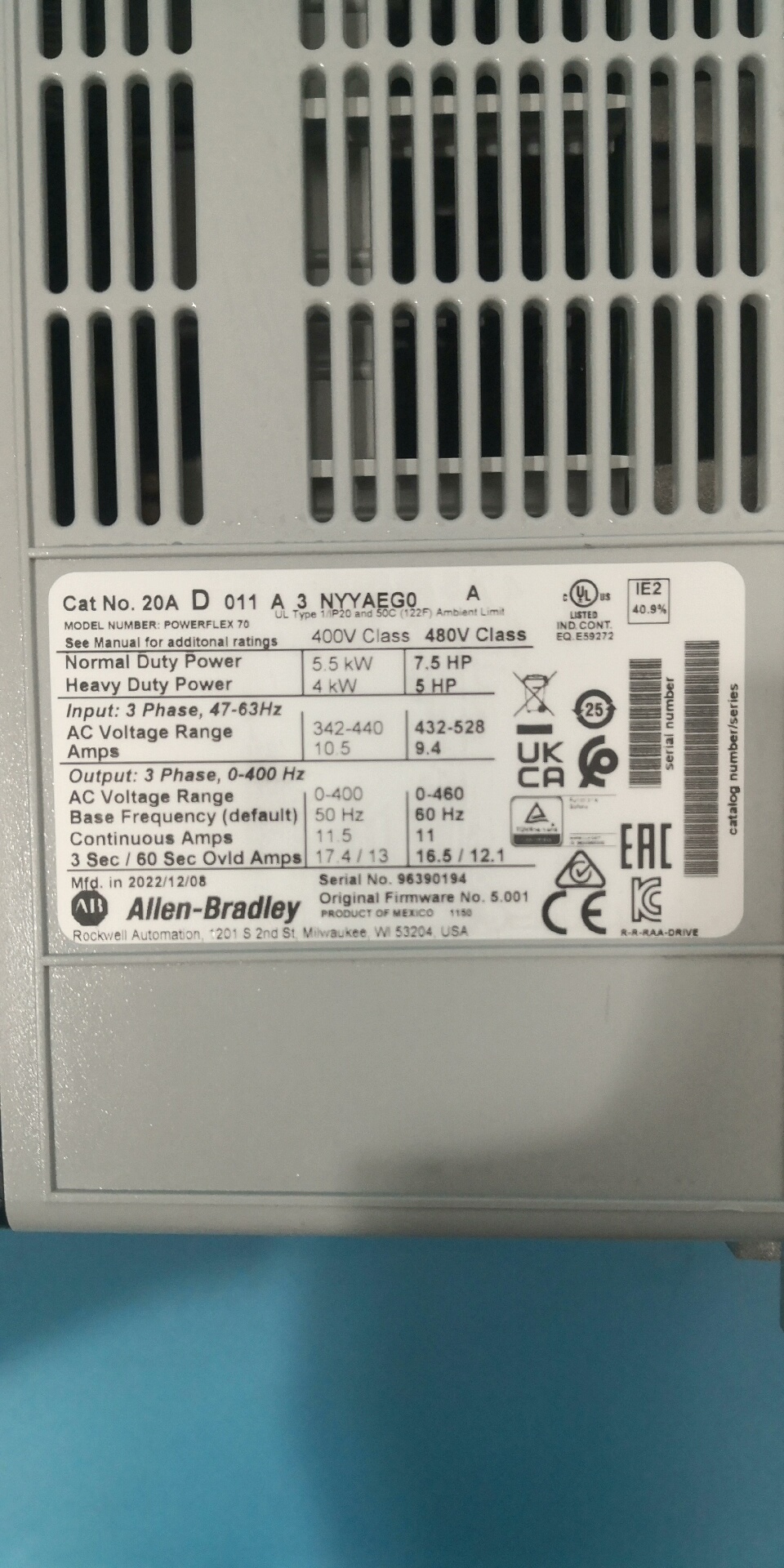 AB罗克韦尔变频器20AD011A 3NYYAEG0 A版议