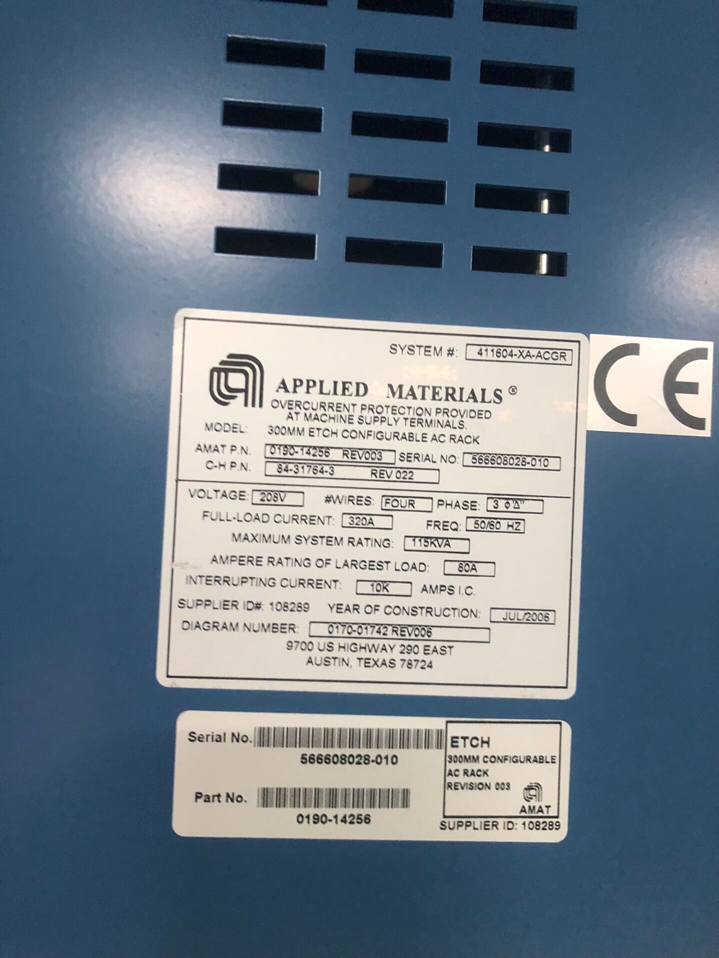 > AMAT应用材料300MM蚀刻机AC机柜,型号0190-14