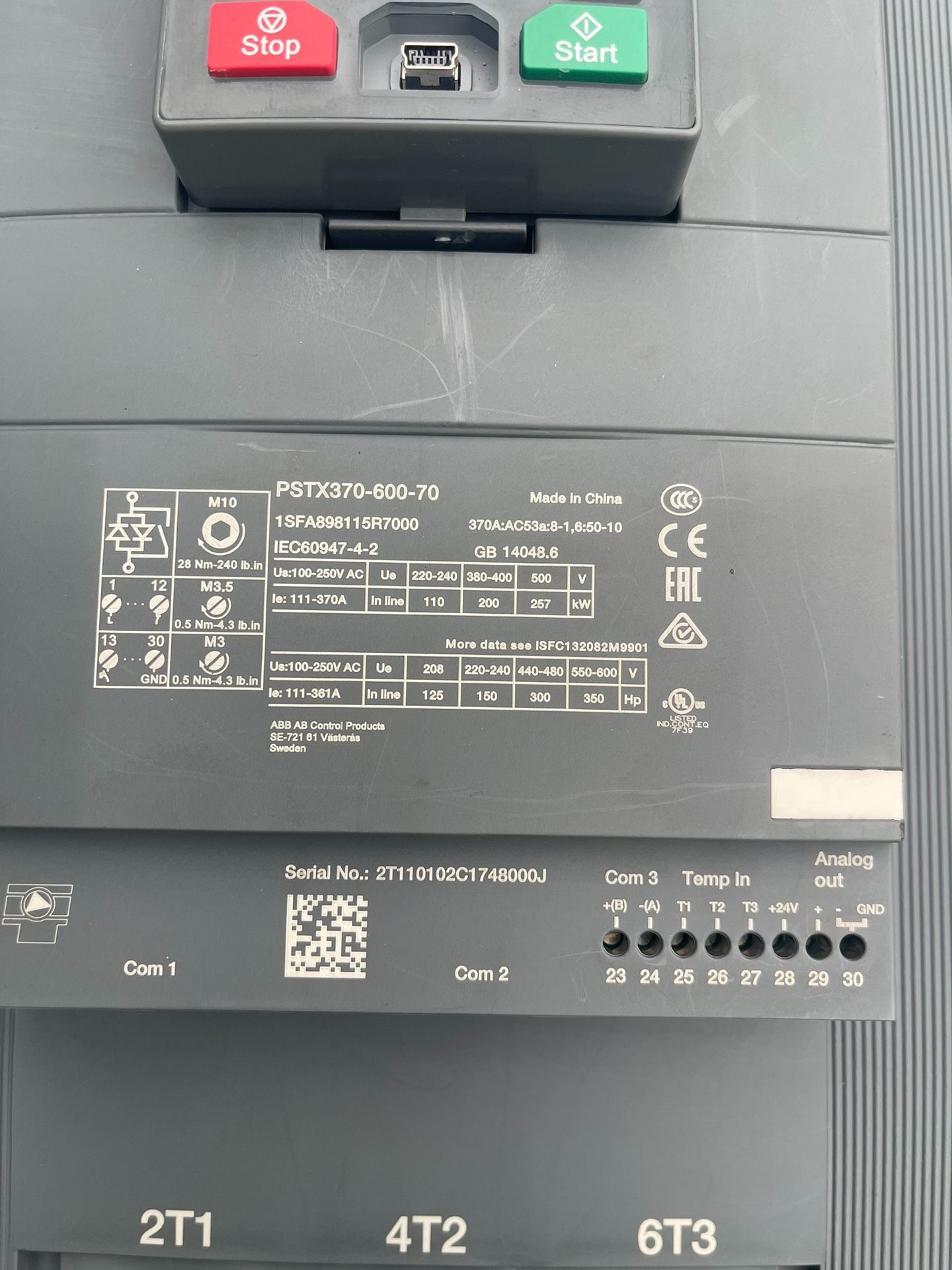 ABB软启动器 PSTX370-600-70,200KW三相