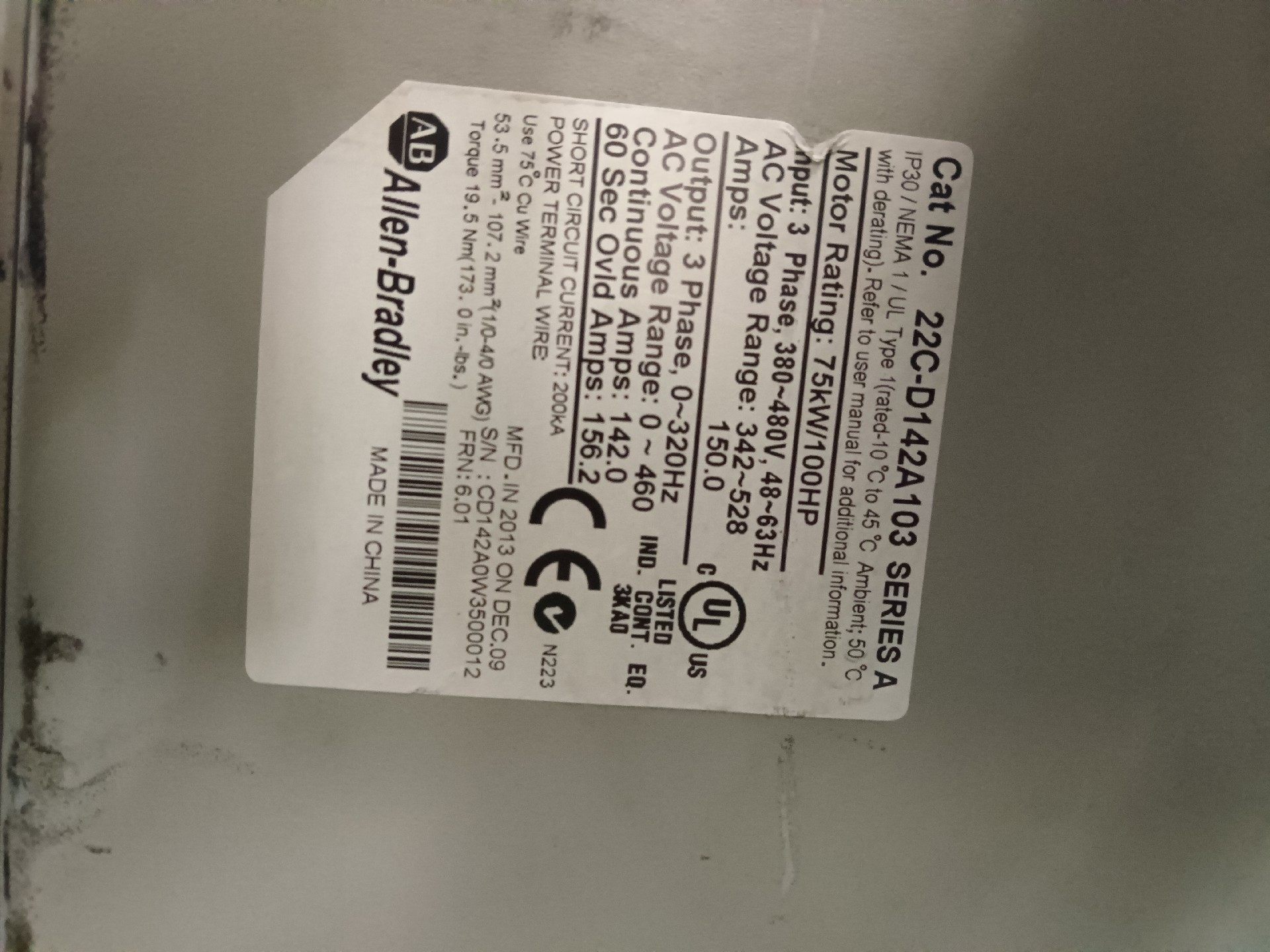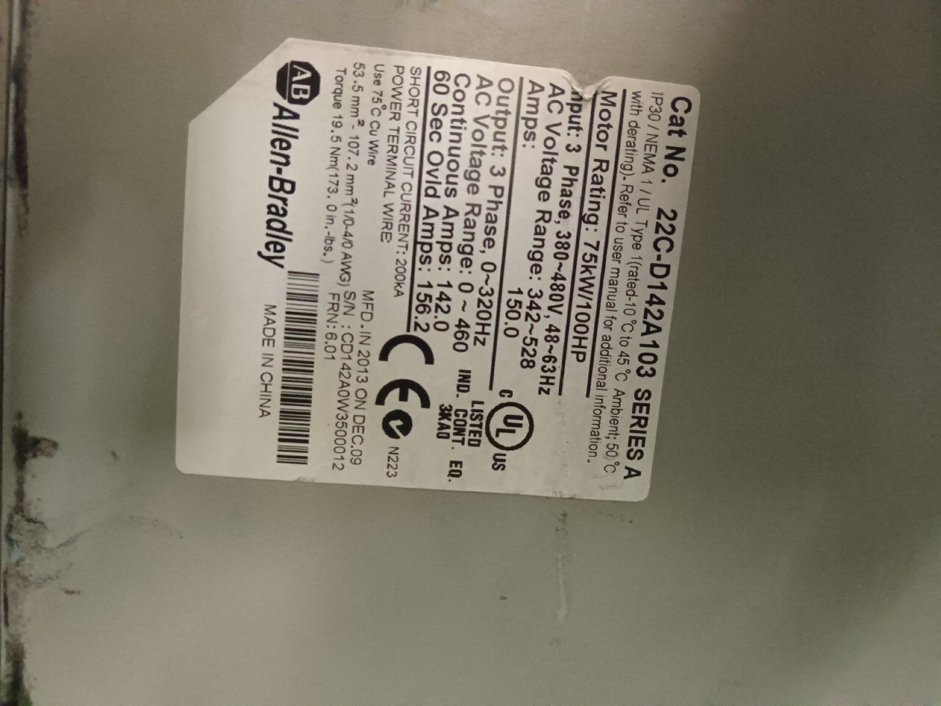 > 变频器AB罗克韦尔变频器22C-D170A103 22C-D