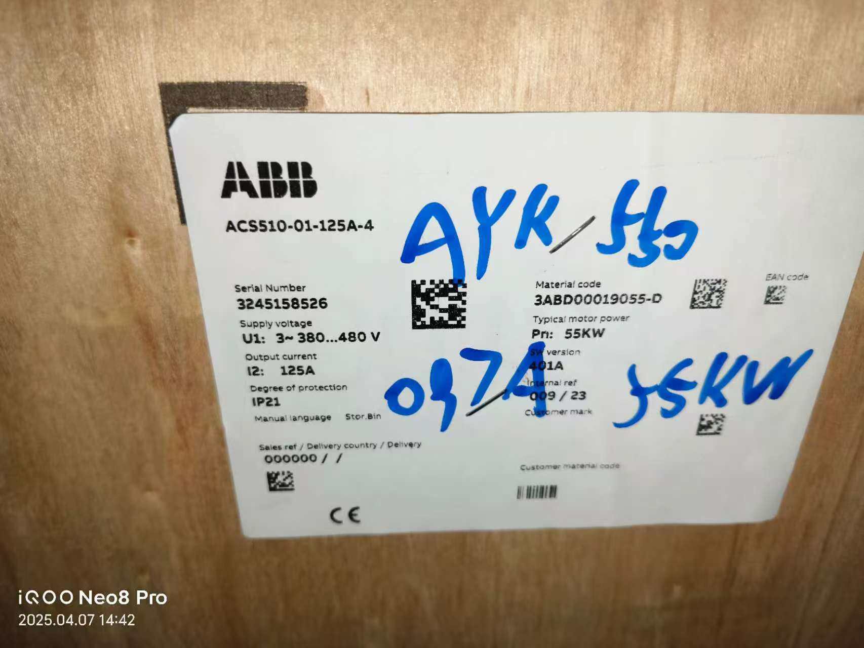 > ABB变频器,型号ACS510-01-125A-4,55KW