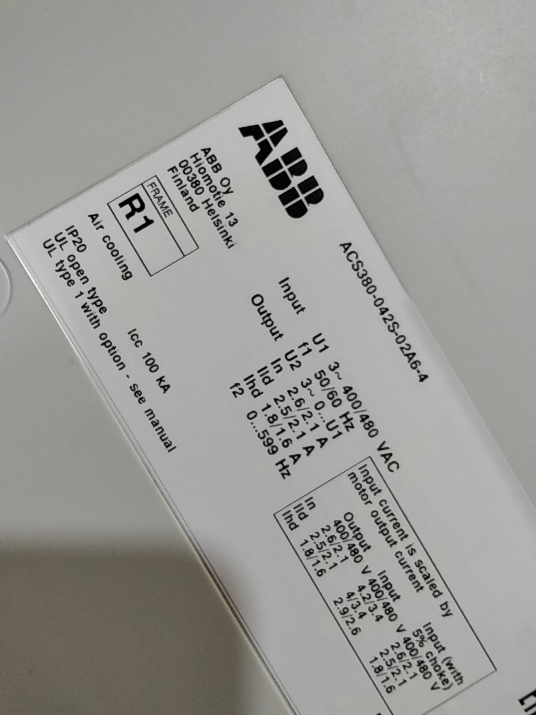 > ABB变频器ACS380-042S-02A6-4原装拆机实物