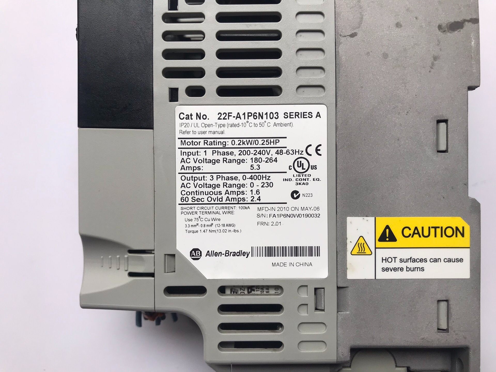 > AB罗克韦尔变频器22F-A1P6N103 0.2kw,拆机