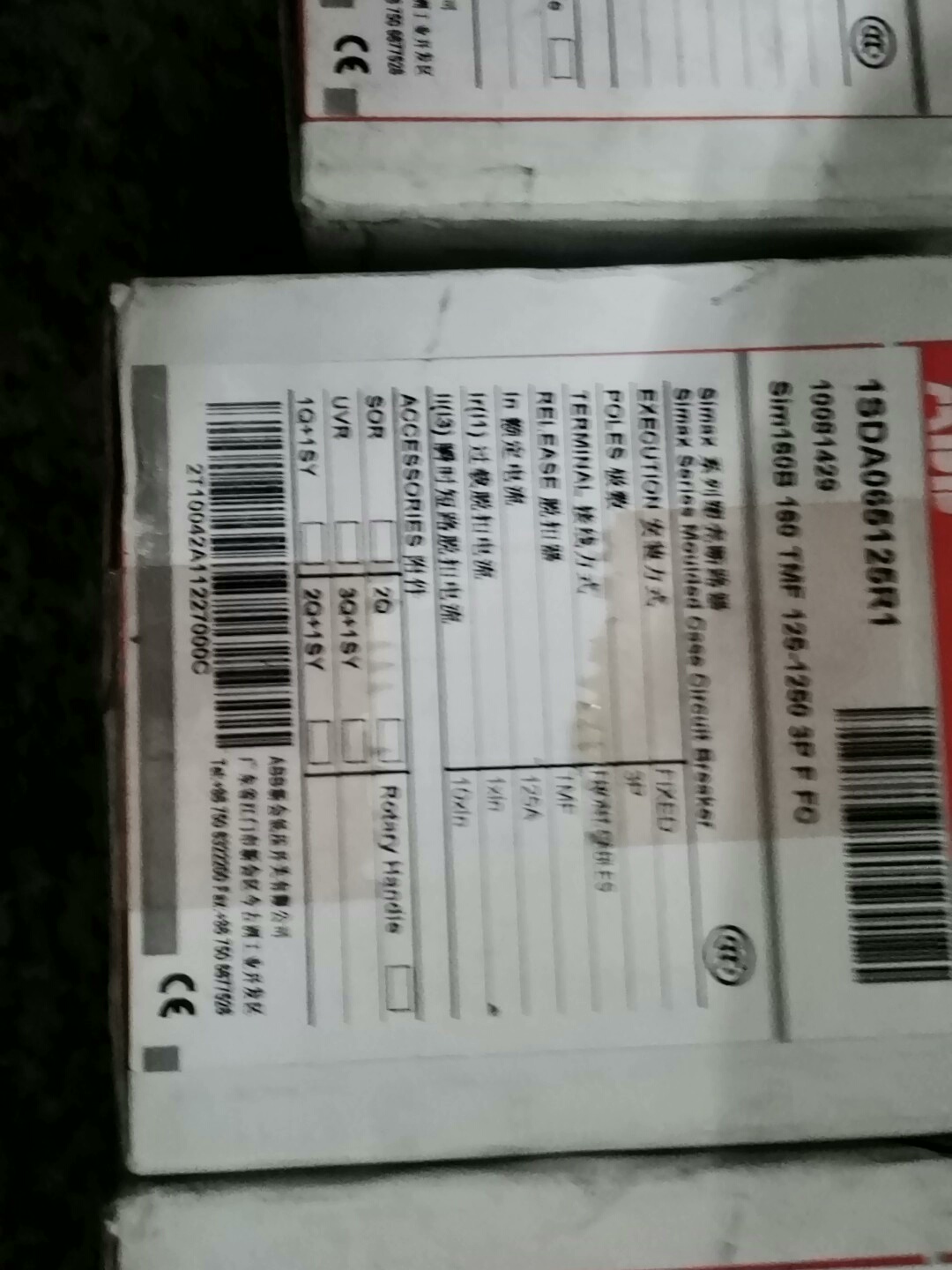 ABB断路器A1C 125TMF125/1250 FF3P