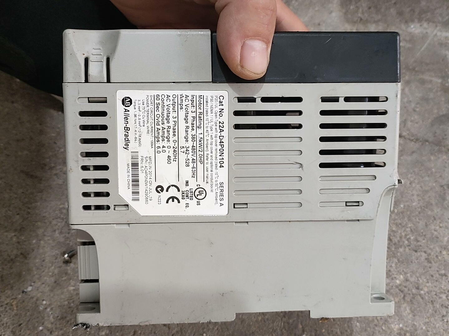 > AB变频器,型号22A-D4P0N104,1.5KW/380