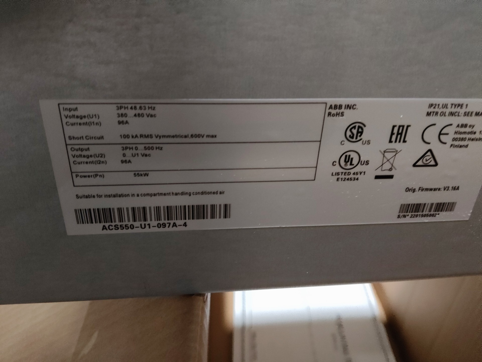 ABB变频器ACS550系列,型号ACS550-U1-097