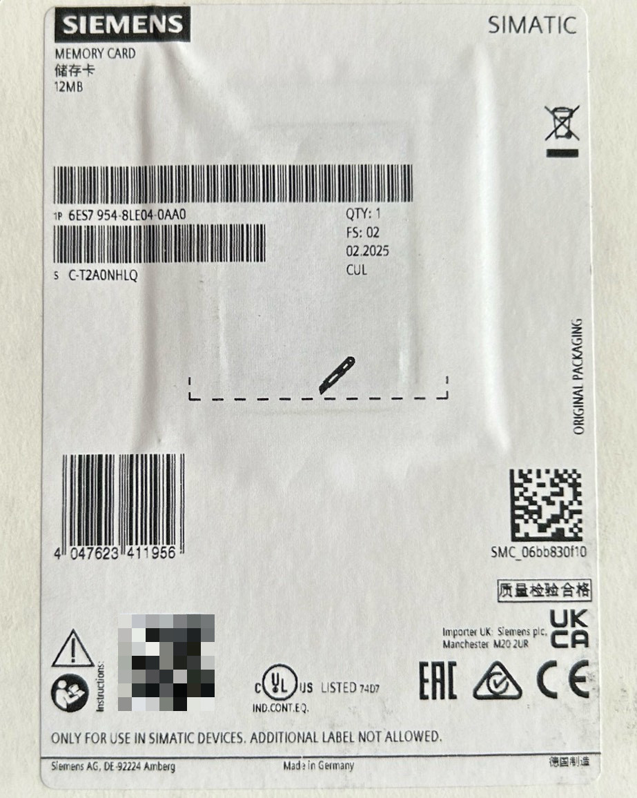 > 6ES7954-8LE04 12MB,记忆卡,剩余一张,