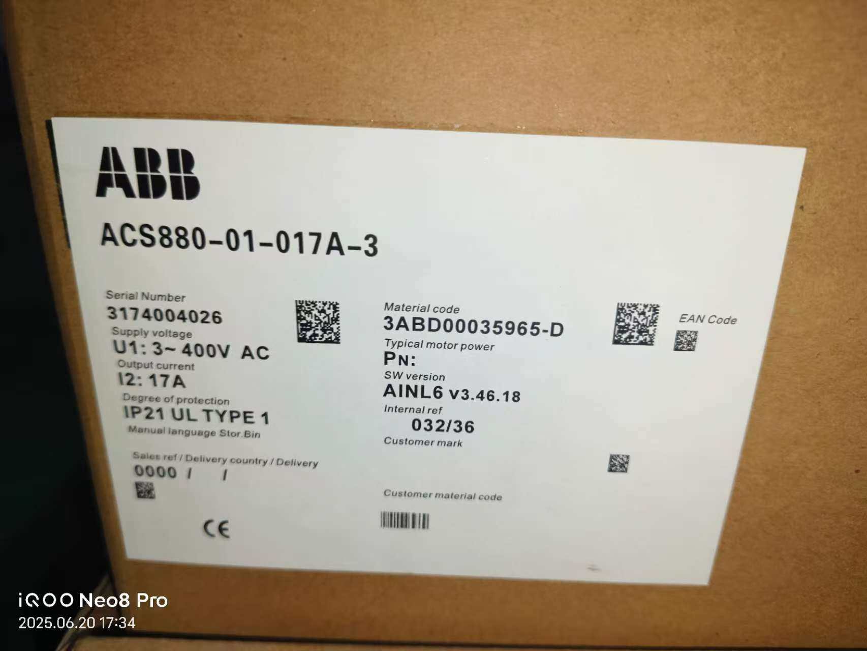 ABB变频器ACS880-01-017A-3,芬兰原装,三相
