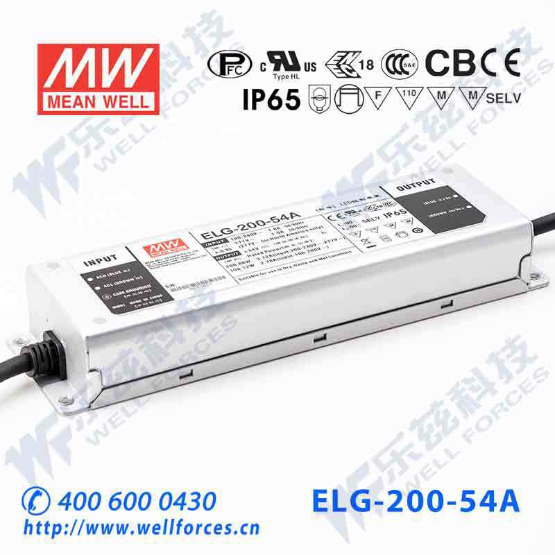 明纬54V LED电源200W ELG-200-54AB 3.72A可调54V恒