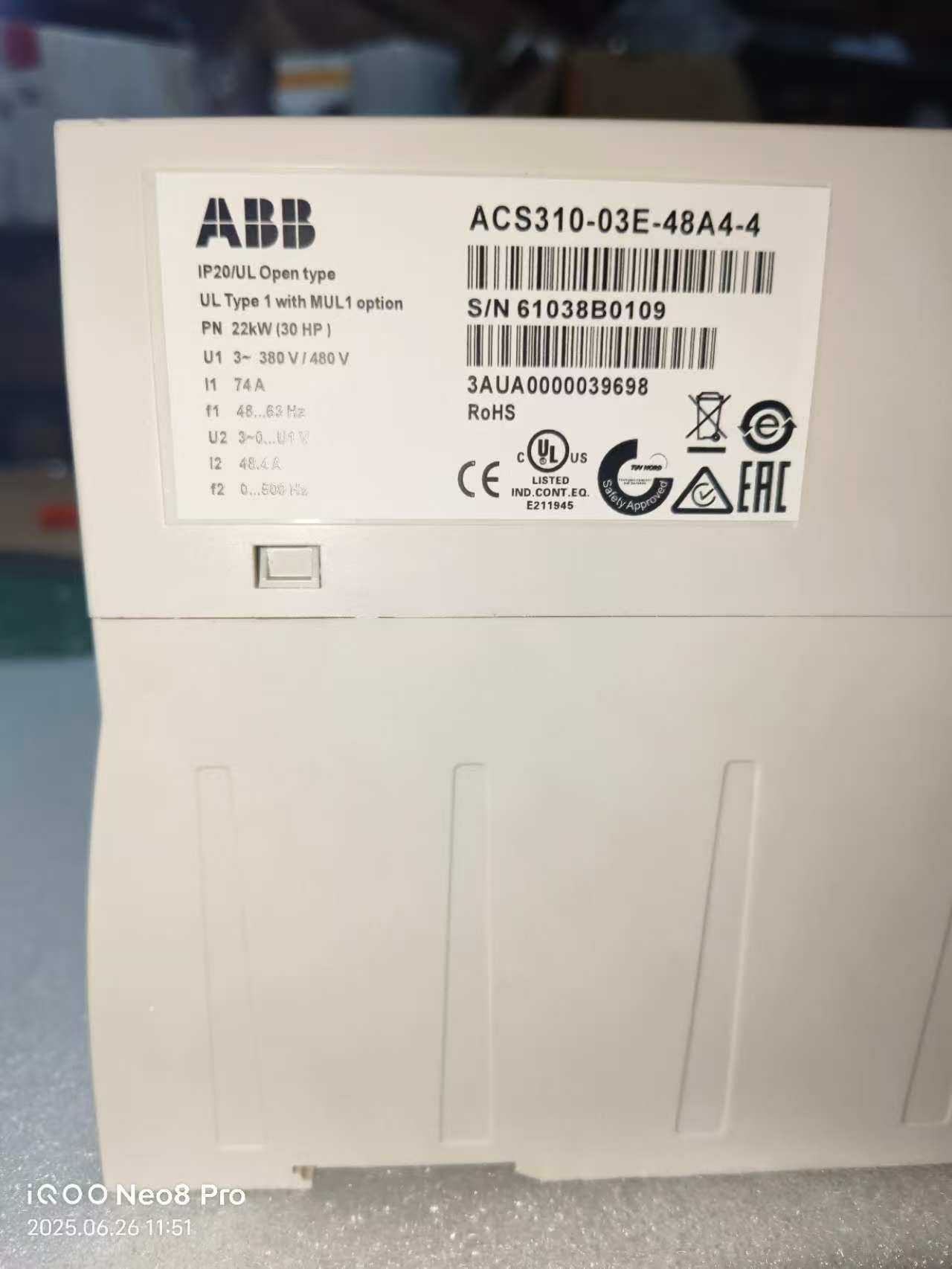 ABB变频器ACS310-03E-48A4-4,22kW功率